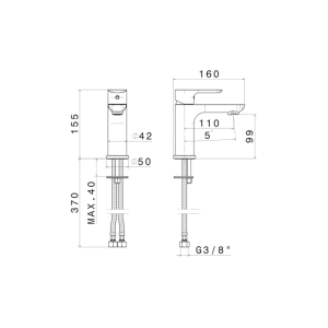 - Baterie lavoar fără ventil, baterie bideu cu ventil
