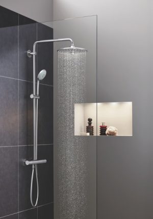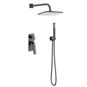 - Setul conține: braț fix pentru capul de duș, cap pătrat 18,5 cm, baterie încastrată, pară de duș cu furtun flexibil de 150 cm