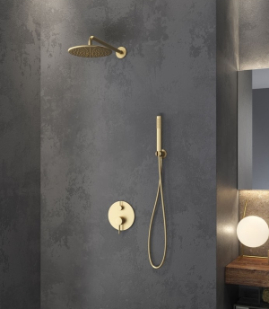 - Setul conține: braț fix pentru capul de duș, cap din inox Ø 20 cm, baterie încastrată, pară de duș cu furtun flexibil de 150 cm