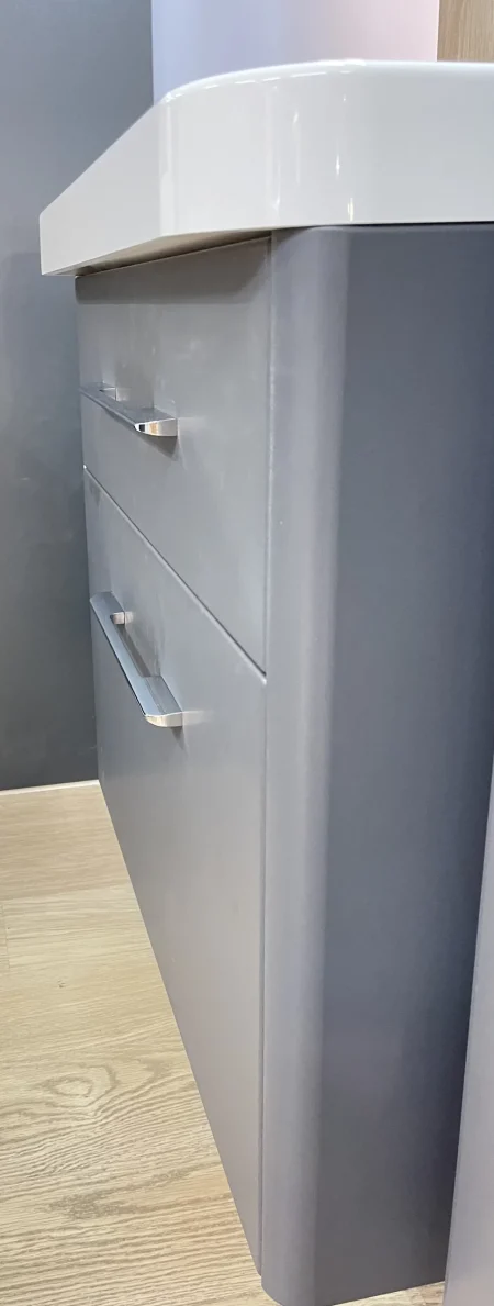 - Două sertare cu închidere lentă, mânere metalice crom lucios