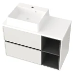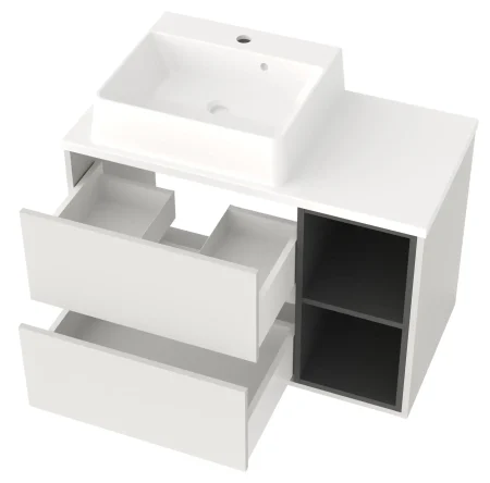 - Două sertare cu închidere lentă, mânere ascunse. Două spații de depoziatre