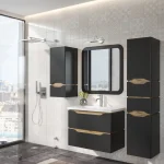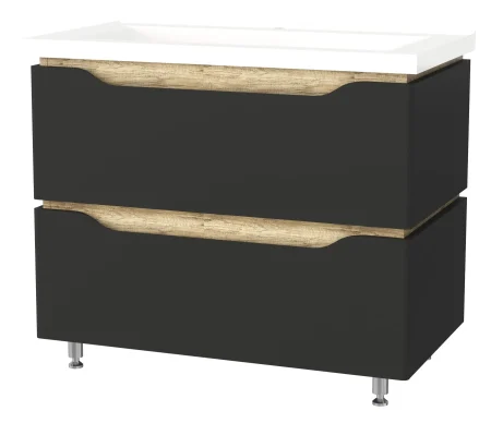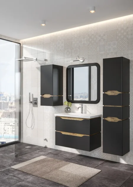 • Material: fețele mobilierului mdf vopsit antracit mat, carcasa mobilierului din pal laminat, aspect de lemn